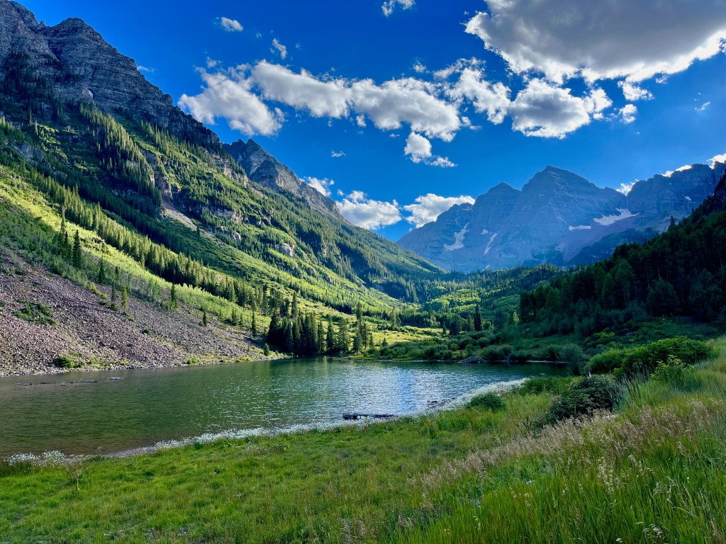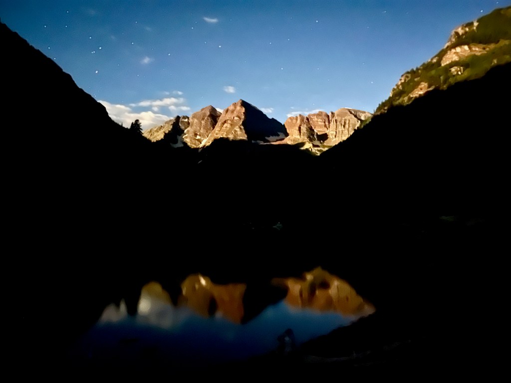 This is a 10 second exposure that I took at 9:06 pm as the full moon was gaining elevation. Maroon Lake is shielded from direct moonlight by a mountain ridge to the south.
